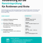 Am 20. April 2026 startet der Intensivkurs „Prüfungstraining Fachsprachprüfung (FSP)“ für internationale Ärztinnen und Ärzte im Online-Format. Der Kurs unterscheidet sich von klassischen Sprachkursen durch seinen klaren Prüfungsfokus: Teilnehmende trainieren gezielt die prüfungsrelevanten Situationen wie Anamnesegespräch, Dokumentation, Patientenvorstellung und Arzt-Arzt-Gespräch. Besonderer Mehrwert des Kurses: reines Prüfungstraining mit vielen Simulationen klare Struktur und typische Prüfungsfälle konkrete